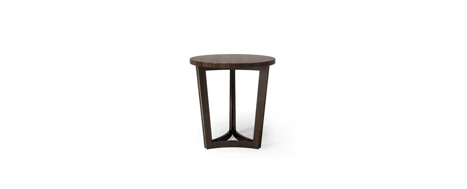 Round side table with wooden top, shiny Eucalyptus finishing with brass insert.